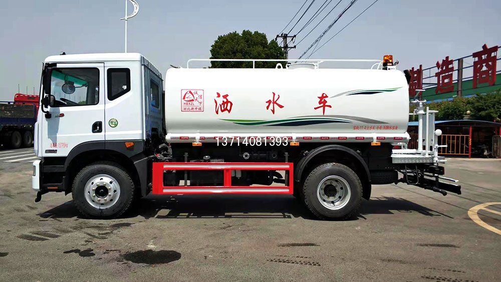 •   【性能简介】前冲(喷)后洒,带侧喷花洒,罐体后带工作平台。平台上安装绿化洒水高炮,炮可全方位360°旋转,炮喷射形状可连续调成直冲状、大雨、中雨、小雨、毛毛雨,平台边安装洒水砣和低位花洒,罐体右上侧安装高位花洒。配备自吸自排优质洒水泵,吸程≥7m,洒水宽度15-21m,洒水炮射程20-35m,带消防接口、滤网、自流阀,罐体管道和防护网采用镀锌材料,罐体采用碳钢板,内有隔板,罐体机器人自动焊接。采用底盘自带原装取力器,上装面漆为烤漆。带洒水警示音乐和小警灯,带水位计。紧急时可抗旱和消防运水。